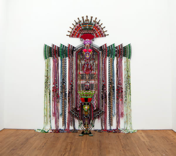 Among the works on view are Marie Watt’s Singing Everything: Crescendo (Staccato), created during a Sewing Circle she hosted at The Whitney Museum, anticipating her forthcoming solo exhibition at Marc Straus in October 2025. Anne Samat debuts bold new sculptural installations that merge traditional weaving techniques with everyday commercial goods. Jeffrey Gibson’s Like a Hammer, the title piece of his landmark touring museum survey starting in 2014. Antonio Santín introduces a striking new series of materially-complex oil paintings of Persian carpets with extraordinary detail that incorporate his original designs. Herman Nitsch’s Schüttbild, is one of only three performance-based paintings ever produced that includes a totemic installation of priestly robes. Additional highlights include a commanding freestanding sculpture by Abdulnasser Gharem, a masterful wall hanging by Ozioma Onuzulike, and recent works by Renée Stout, following her critically acclaimed exhibition at Marc Straus.