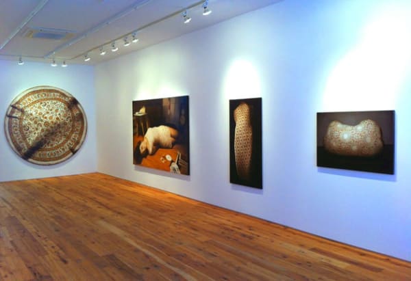 These series of recent related works incorporate the human form as a fetishized object to be hidden or revealed in images that often conjure a cinematic aesthetic. The rug series evolved from his interest in the opacity of fabric as a device to obscure the body with abstract patterns and textures. His newest series of crocheted landscapes of the female form are at once a technical accomplishment of texture and a formal repositioning of the body as a distinct yet abstract mass.