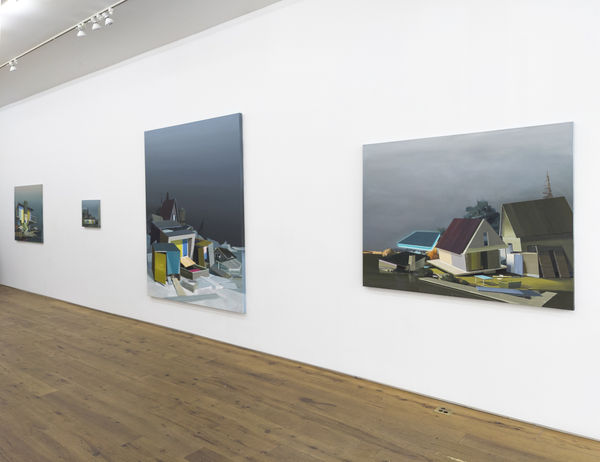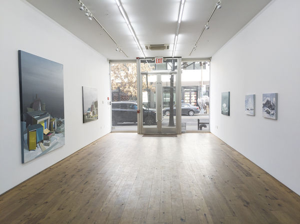 Puder’s creative process is traditional with a few contemporary twists. The earlier works were created entirely with brush and paint. He now uses a spatula with a deliberate application of paint to specific parts of the canvas; a roof, or a river path, for instance, are now more brilliant through the use of a new technique. He uses tape occasionally to create defined edges, and to create important elements of the pictorial plane, such as broken structures and melting icebergs. Puder argues that despite our infinite capacity to destroy, by shifting focus we can build up. In his continued quest to create quixotic worlds, he continues to look at nature and culture, and how a shift in one often impacts the other.