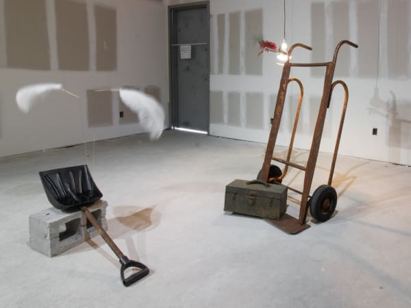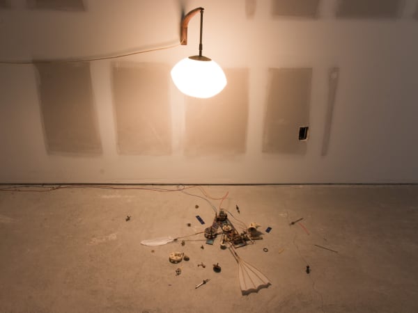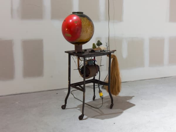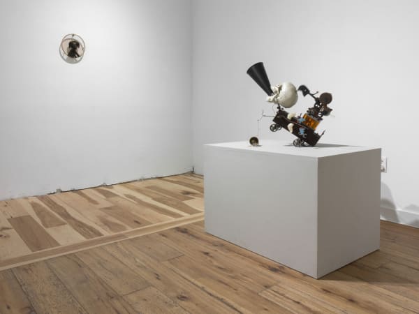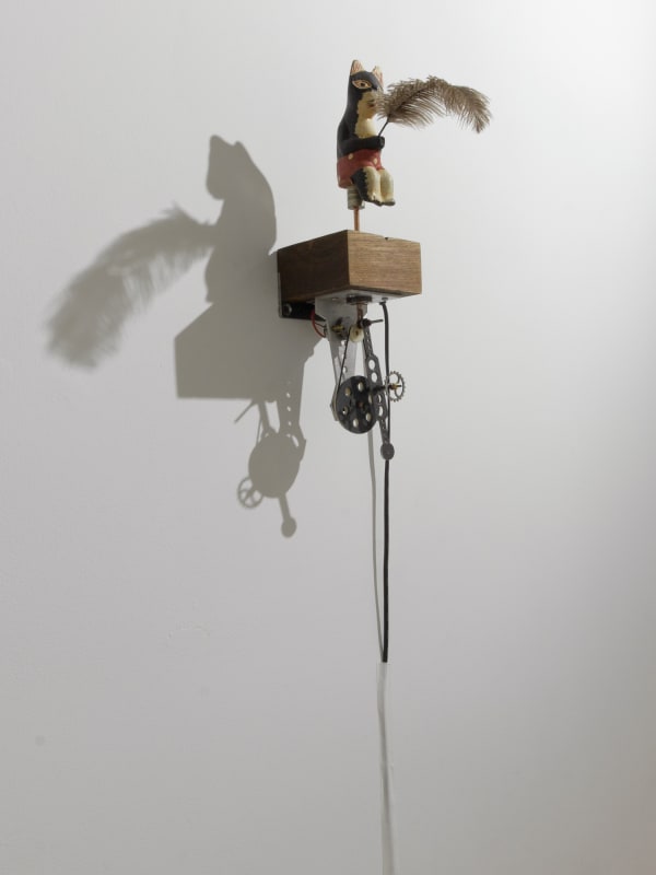 Despite its low-tech appearance, “Dream Fiend” is a complex construction of found wood and cast-metal components, replete with a metal bird-head that repeatedly pecks a human skull. A built-in receiver intercepts and broadcasts nearby signals. Han combines Dutch Vanitas with the relentless tick-tocking of a cuckoo clock. Metaphors of our daily lives, Han’s work reveals the beauty in our routines and experiences.